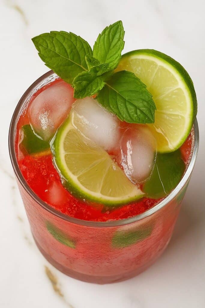 Garnish with a fresh mint sprig and a lime slice if desired. Serve immediately and enjoy!