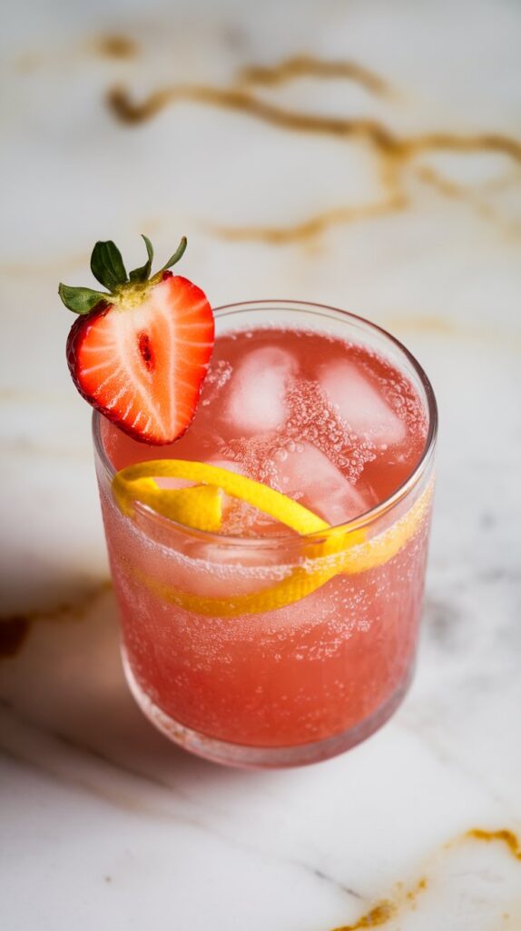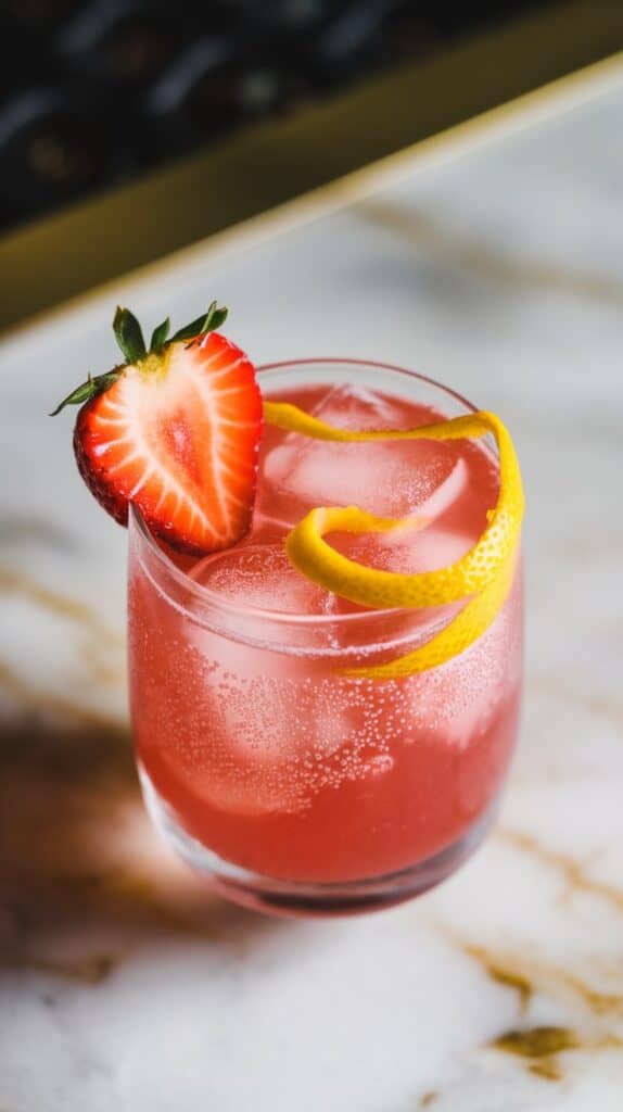 Top with a sliced strawberry and a lemon twist for that extra touch.