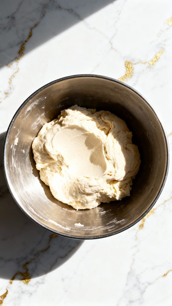 Pour in ⅔ cup heavy cream and 1 teaspoon vanilla extract. Stir gently until a soft dough forms—don’t overmix.