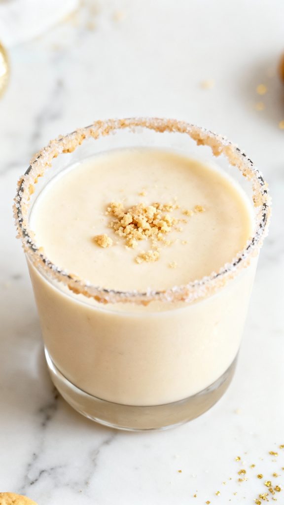 Pour a little honey onto a small plate. On another plate, mix granulated sugar with crushed sugar cookies. Dip the rim of your glass in the honey first, then press it into the sugar-cookie mixture to coat.