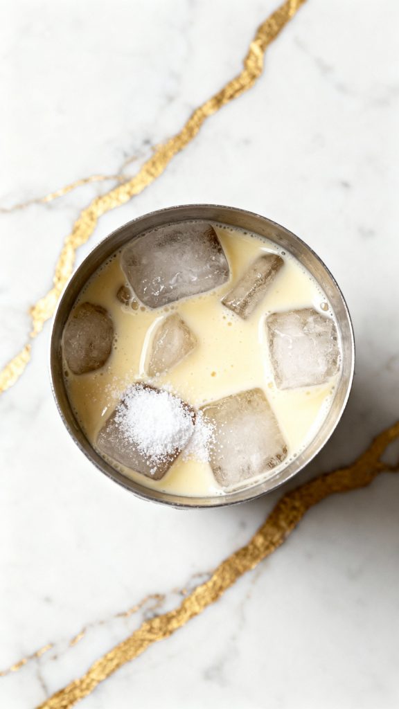 Secure the shaker lid and shake hard for 10–15 seconds, until everything is well mixed and chilled.