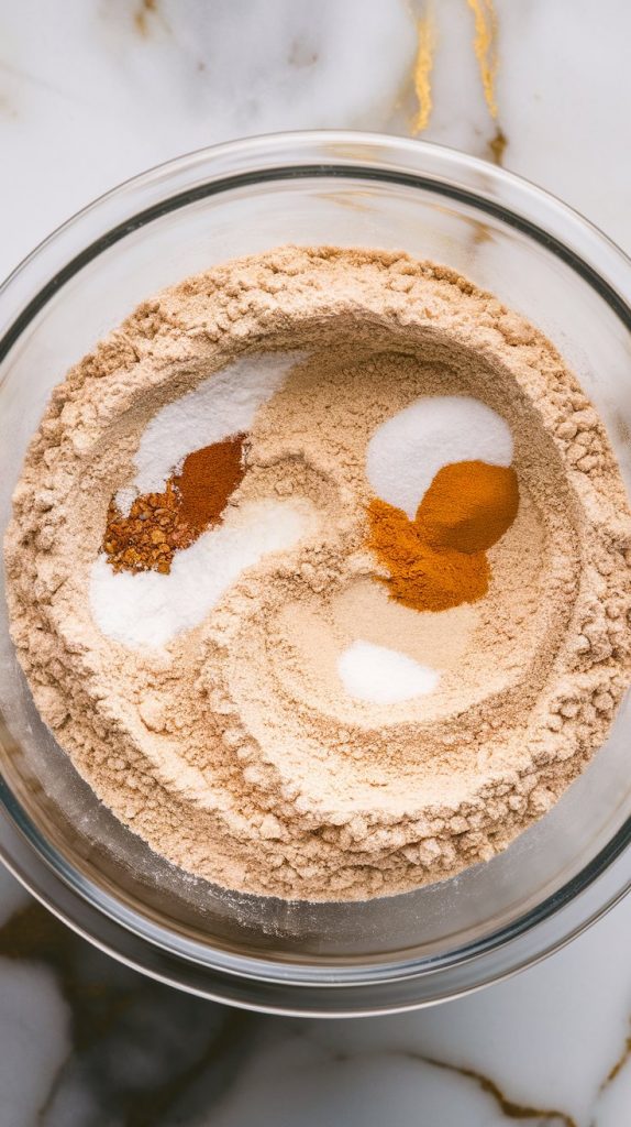 In a separate bowl, whisk together 1 ¾ cups all-purpose flour, 1 teaspoon baking powder, ½ teaspoon ground cinnamon, ¼ teaspoon ground nutmeg, and ¼ teaspoon salt.