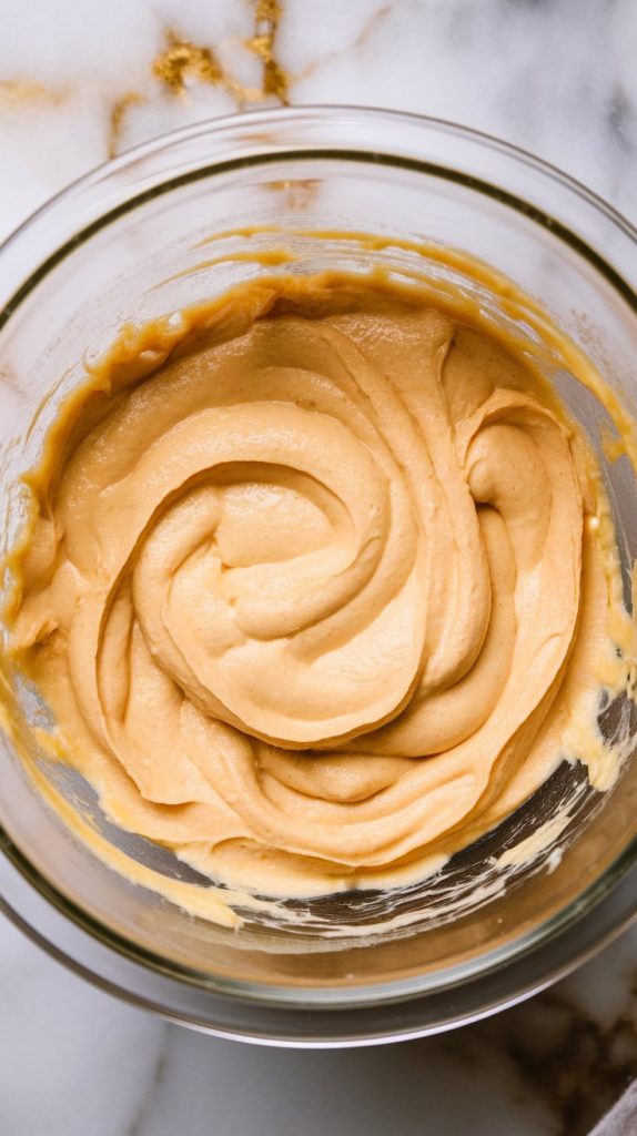 In a medium bowl, beat together 8 oz softened cream cheese, 1 cup mashed sweet potato, 1/3 cup granulated sugar, 1 large egg, 1/2 tsp cinnamon, 1/4 tsp nutmeg, 1/2 tsp vanilla extract, and a pinch of salt. Mix until completely smooth and creamy.