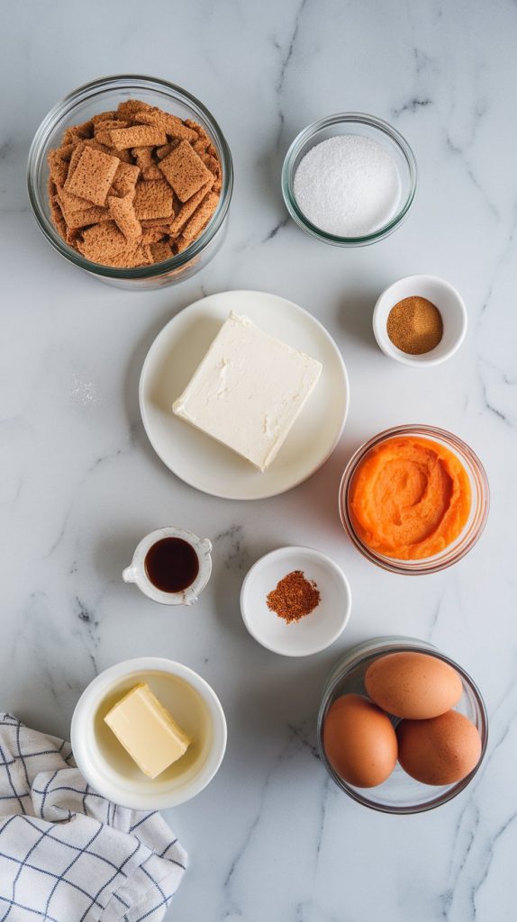 Sweet potatoes are naturally creamy and full of starch, which helps give the cheesecake structure and moisture. Cream cheese adds that rich, tangy base we all love, and the eggs help it set up during baking without needing gelatin or extra thickeners. The sour cream keeps the texture smooth and gives just the right amount of tang to balance the sweetness.