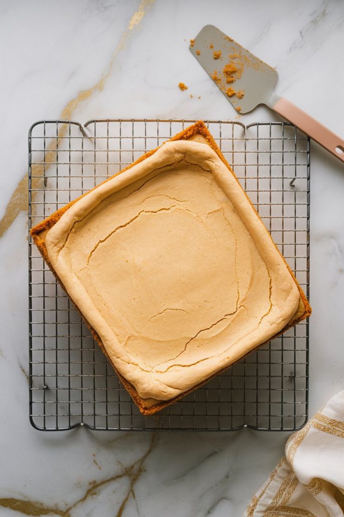 Cool the cheesecake squares in the pan on a wire rack for 1 hour, then transfer to the fridge to chill at least 4 hours or overnight.