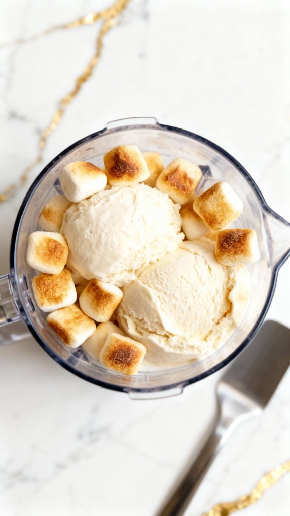 Toasting the marshmallows caramelizes their sugars, bringing out a deeper, smoky-sweet flavor that balances the richness of the Baileys. Blending them while warm helps them emulsify into the ice cream, creating a silky texture. The cold milk keeps it drinkable, and the ice cream gives it body.