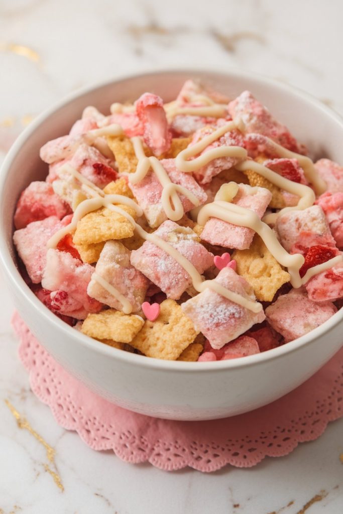 This version is pink, sweet, and perfectly festive — like a hug in a snack bowl.