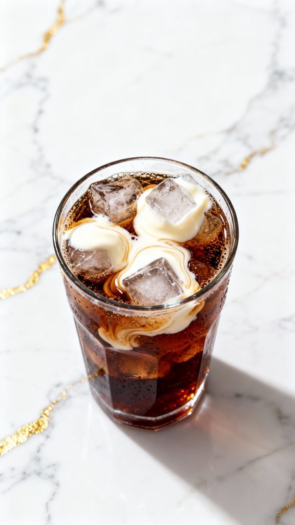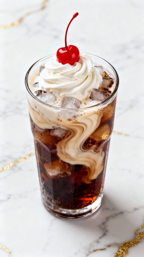 The carbonation in the soda and the fat in the half-and-half blend to make that signature creamy fizz without curdling—if you pour slowly and stir gently. Vanilla syrup adds sweetness and depth that ties it all together, giving it that rich “soda shop” flavor.