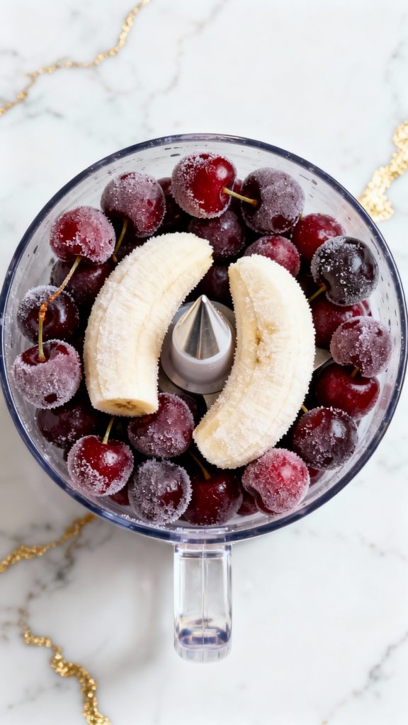 Step 1: Add Frozen Cherries and Banana to Blender